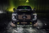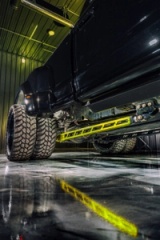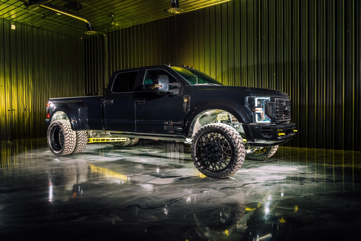 Powerstroke Diesel 475 HP / 1,050 LB-FT Agate Black Metallic All Plastics Color Matched Factory Agate Black Metallic Custom Color Matched OEM Headlights Painted OEM Tail Lights Custom Painted OEM Tow Mirrors Custom High Vis Accents 16 White LED Rock Lights BDS Leveling Kit Fox Shocks Dual Stabilizer with Fox 2.0 Shocks 26" KG1 KD019 Torture Wheels 37" Amp Tires TSO Traction Bars Powder Coat to Match High Vis Accents 35% Tint on the Windshield 5% Tint Side and Rear Windows Own Boss Supply Co Decals